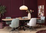 Chaise avec ressorts ensachés et surpiqures. Elle offre une belle combinaison de tissus, en 4 couleurs et est en format pivotant