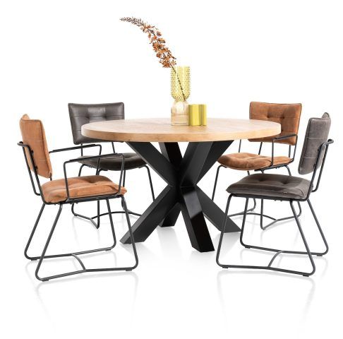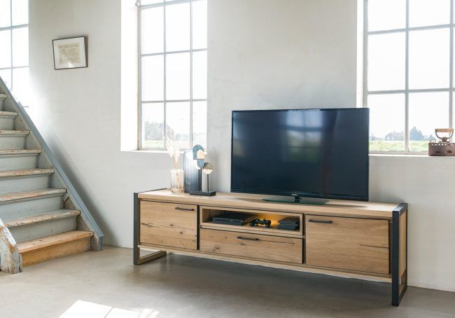 Cette collection propose différents types de meubles comme des tables, des buffets ou encore des vitrines. Cette salle à manger offre un contraste entre le bois et le métal, pour un résultat à la fois authentique et rétro.
