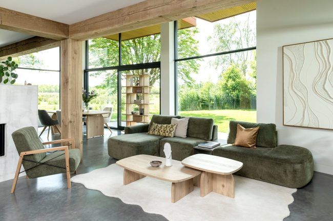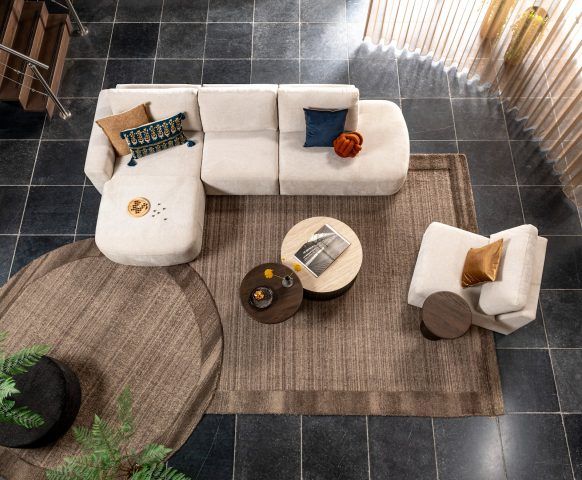 Ce canapé modulaire vous permet de jouer avec les éléments. Il possède des coins et meubles arrondis ainsi que de nombreuses sortes et couleurs de tissus différentes.