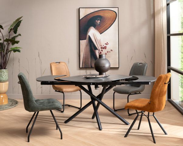 Vous voulez une table à manger qui ne prend pas trop de place, mais à laquelle vous pouvez inviter tous vos amis ? Alors, la table extensible Preston est exactement ce qu'il vous faut. Elle a une taille de base de 120x90 cm et de jolis coins arrondis. Avec un mécanisme de rotation super pratique, vous pouvez agrandir cette table compacte en une grande table de 180 cm quand vous le souhaitez ! Le pied central permet de s'asseoir confortablement de tous les côtés et le plateau en céramique sur verre ultra-résistant rend la table extrêmement "résistante aux fêtes". Cette version avec un plateau anthracite est également disponible en look marbre blanc.